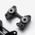 The handlebar clamp on a motorcycle is a component that secures the handlebars to the motorcycle's fork or triple tree. It ensures the handlebars are firmly attached and properly aligned, providing stability and control during riding.