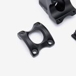 The handlebar clamp on a motorcycle is a component that secures the handlebars to the motorcycle's fork or triple tree. It ensures the handlebars are firmly attached and properly aligned, providing stability and control during riding.