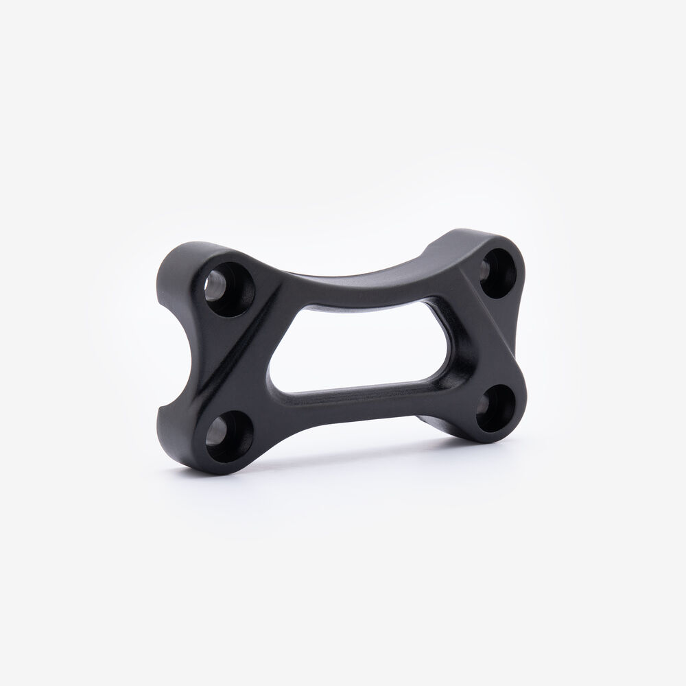 The handlebar clamp on a motorcycle is a component that secures the handlebars to the motorcycle's fork or triple tree. It ensures the handlebars are firmly attached and properly aligned, providing stability and control during riding.