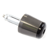 The handlebar end on a motorcycle is the component attached to the outermost part of the handlebar. It helps protect the handlebar from damage in the event of a fall or crash and can also serve as a mounting point for bar-end weights or mirrors. Designed for durability, it ensures the handlebar remains secure and functional.