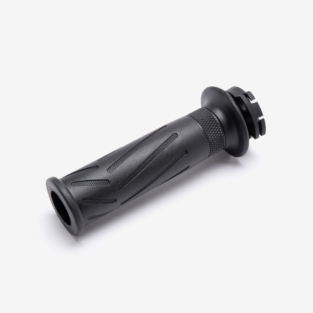 The right handlebar grip on a motorcycle is the rubber or foam covering on the right side of the handlebar. It provides a comfortable and secure surface for the rider’s hand while operating the throttle. Designed for ergonomics and durability, the grip helps improve control and reduces vibration during rides.
