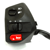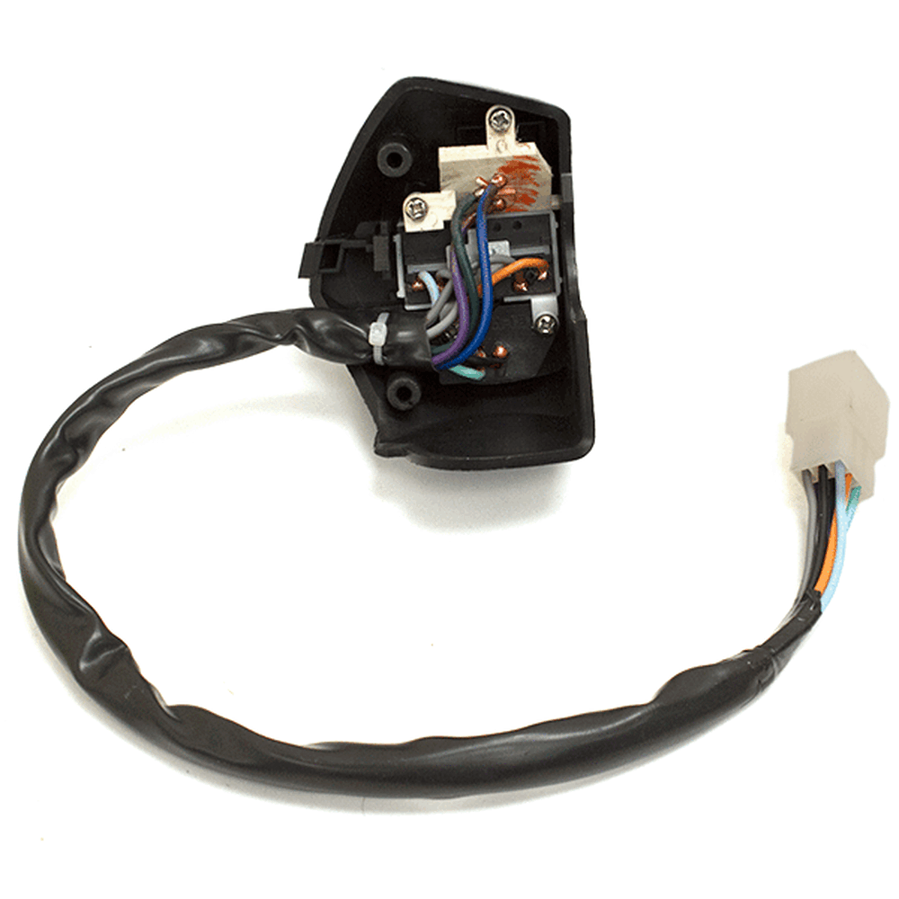 The left handlebar switch on a motorcycle is a control unit mounted on the left side of the handlebar. It typically includes switches for the horn, turn signals, and headlight controls. This switch allows the rider to operate essential functions easily while maintaining control of the motorcycle.