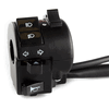 The left handlebar switch on a motorcycle is a control unit mounted on the left side of the handlebar. It typically includes switches for the horn, turn signals, and headlight controls. This switch allows the rider to operate essential functions easily while maintaining control of the motorcycle.