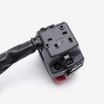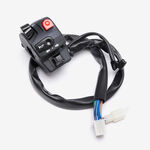 The left handlebar switch on a motorcycle is a control unit mounted on the left side of the handlebar. It typically includes switches for the horn, turn signals, and headlight controls. This switch allows the rider to operate essential functions easily while maintaining control of the motorcycle.