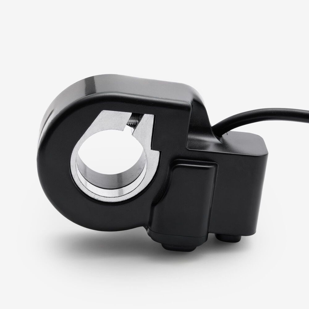 The left handlebar switch on a motorcycle is a control unit mounted on the left side of the handlebar. It typically includes switches for the horn, turn signals, and headlight controls. This switch allows the rider to operate essential functions easily while maintaining control of the motorcycle.