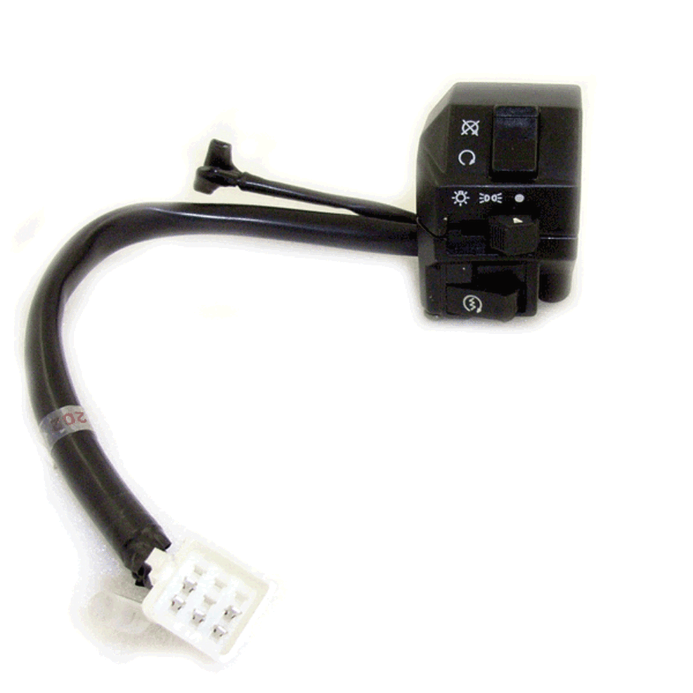 The handlebar switch (right) on a motorcycle is a control unit located on the right side of the handlebars. It typically includes switches for operating the throttle, and sometimes the starter button or other functions. Designed for easy access and ergonomic operation, it allows the rider to control essential functions while maintaining grip and control of the bike.