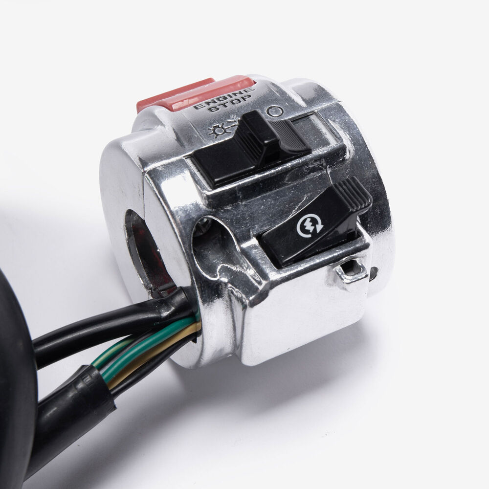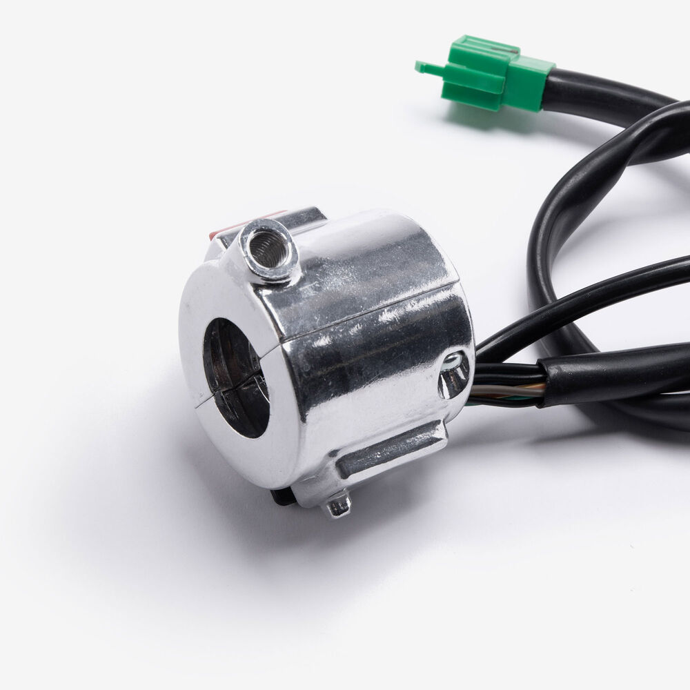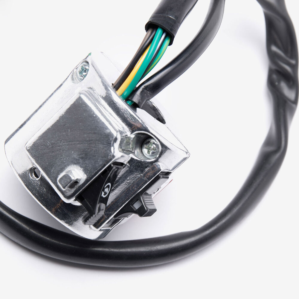 The handlebar switch (right) on a motorcycle is a control unit located on the right side of the handlebars. It typically includes switches for operating the throttle, and sometimes the starter button or other functions. Designed for easy access and ergonomic operation, it allows the rider to control essential functions while maintaining grip and control of the bike.