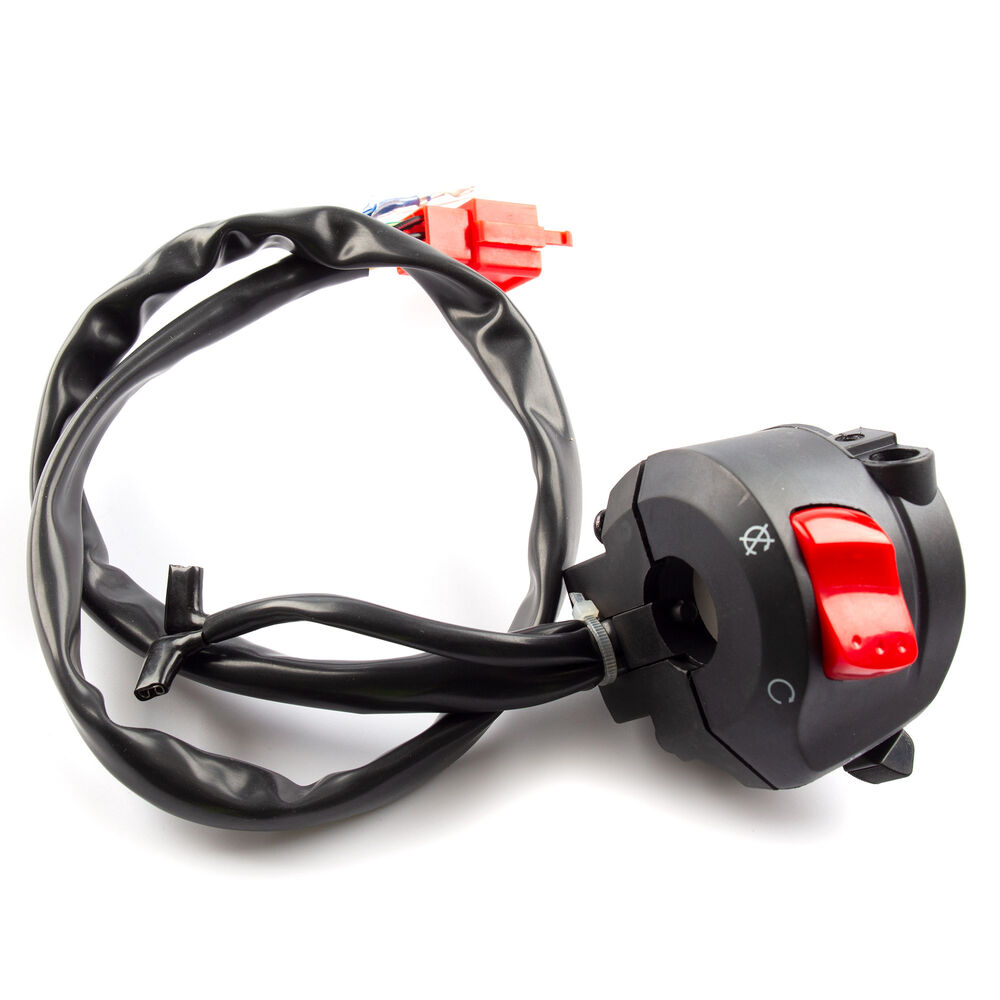 The handlebar switch (right) on a motorcycle is a control unit located on the right side of the handlebars. It typically includes switches for operating the throttle, and sometimes the starter button or other functions. Designed for easy access and ergonomic operation, it allows the rider to control essential functions while maintaining grip and control of the bike.