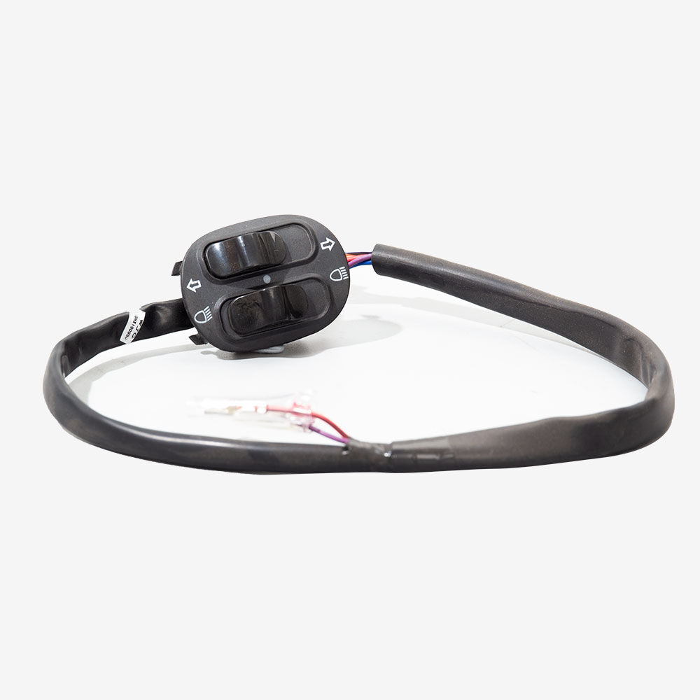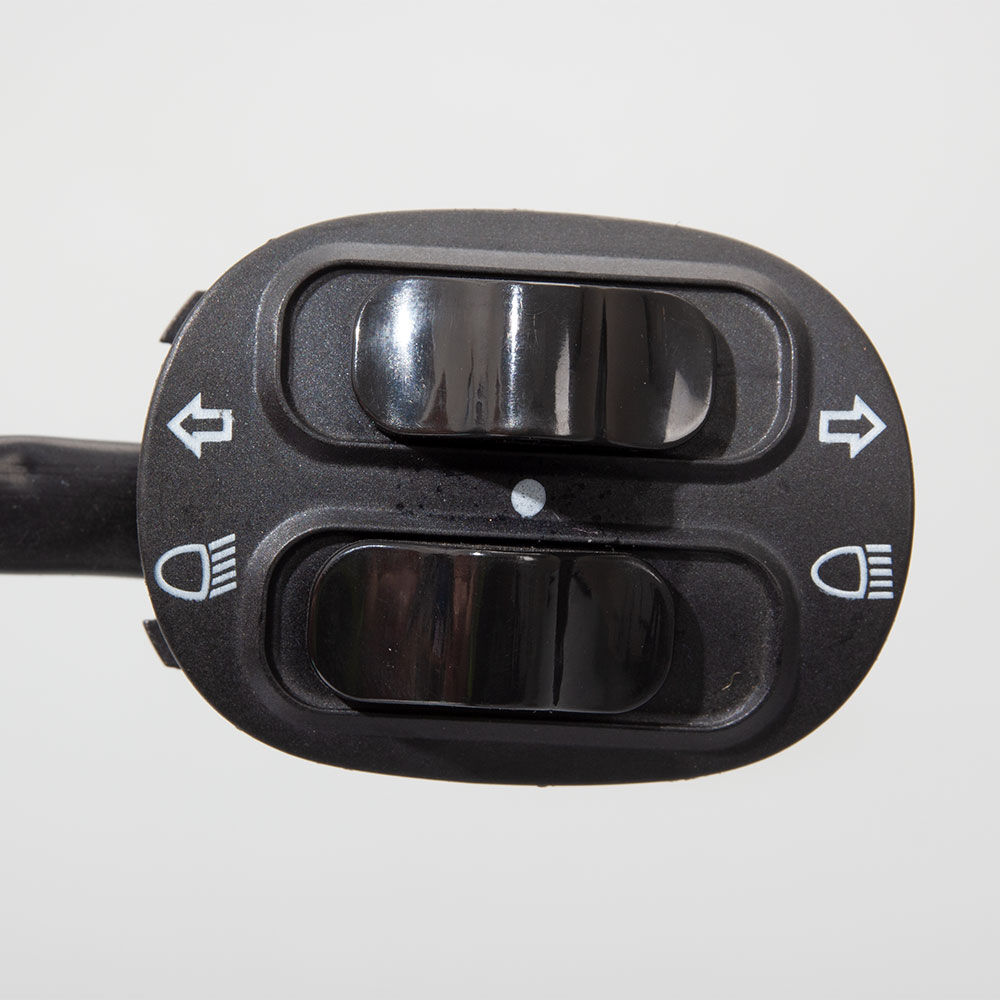 The handlebar switch (right) on a motorcycle is a control unit located on the right side of the handlebars. It typically includes switches for operating the throttle, and sometimes the starter button or other functions. Designed for easy access and ergonomic operation, it allows the rider to control essential functions while maintaining grip and control of the bike.