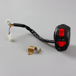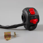 The handlebar switch (right) on a motorcycle is a control unit located on the right side of the handlebars. It typically includes switches for operating the throttle, and sometimes the starter button or other functions. Designed for easy access and ergonomic operation, it allows the rider to control essential functions while maintaining grip and control of the bike.