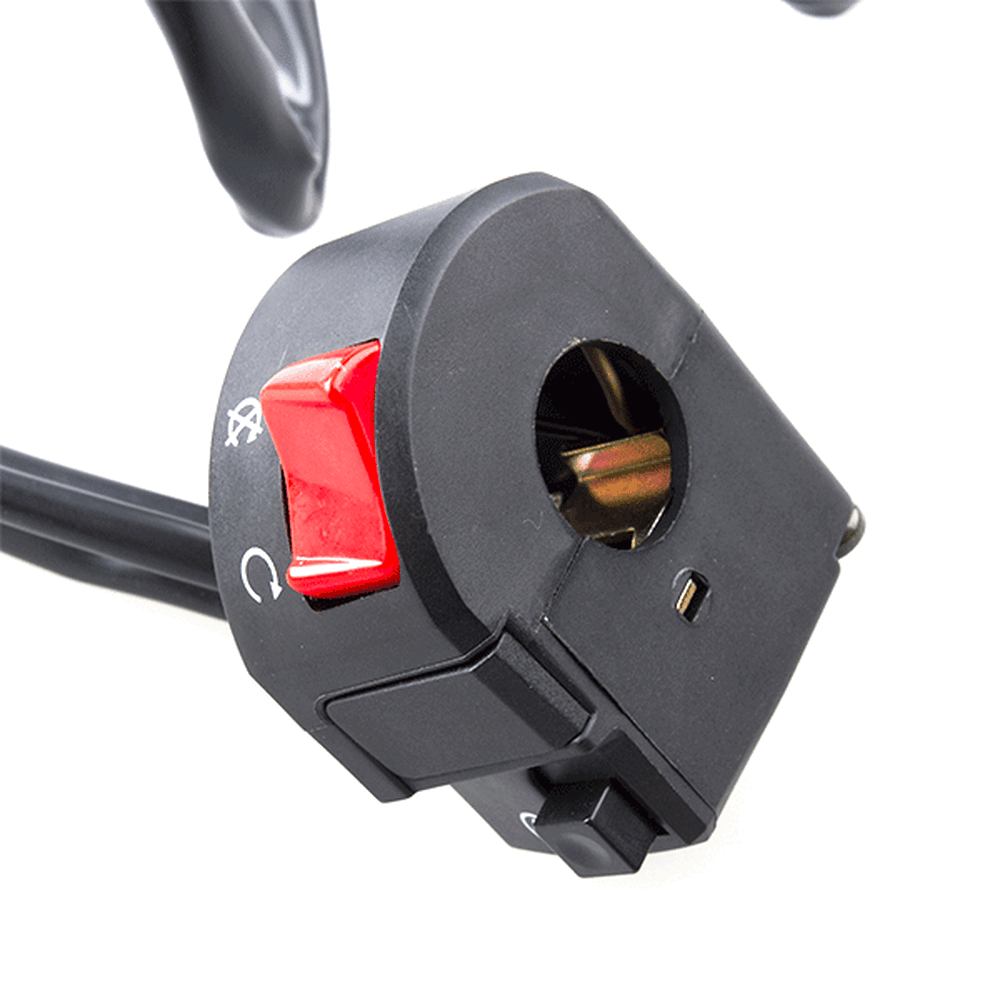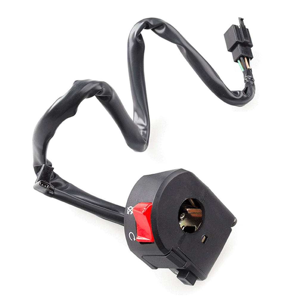 The handlebar switch (right) on a motorcycle is a control unit located on the right side of the handlebars. It typically includes switches for operating the throttle, and sometimes the starter button or other functions. Designed for easy access and ergonomic operation, it allows the rider to control essential functions while maintaining grip and control of the bike.