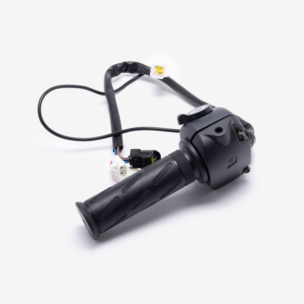 The handlebar switch (right) on a motorcycle is a control unit located on the right side of the handlebars. It typically includes switches for operating the throttle, and sometimes the starter button or other functions. Designed for easy access and ergonomic operation, it allows the rider to control essential functions while maintaining grip and control of the bike.