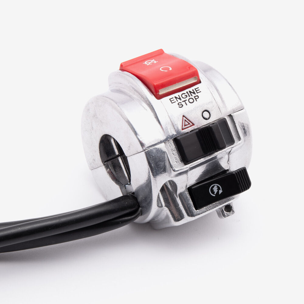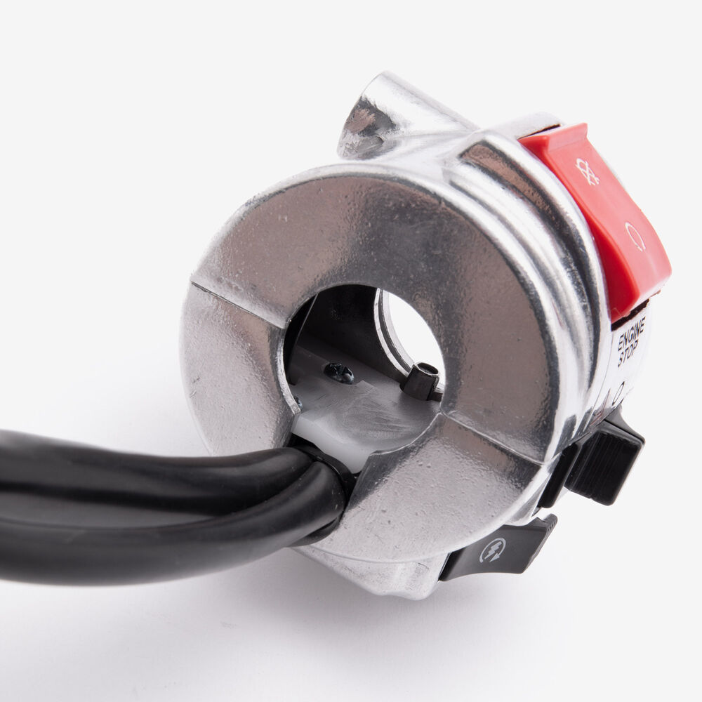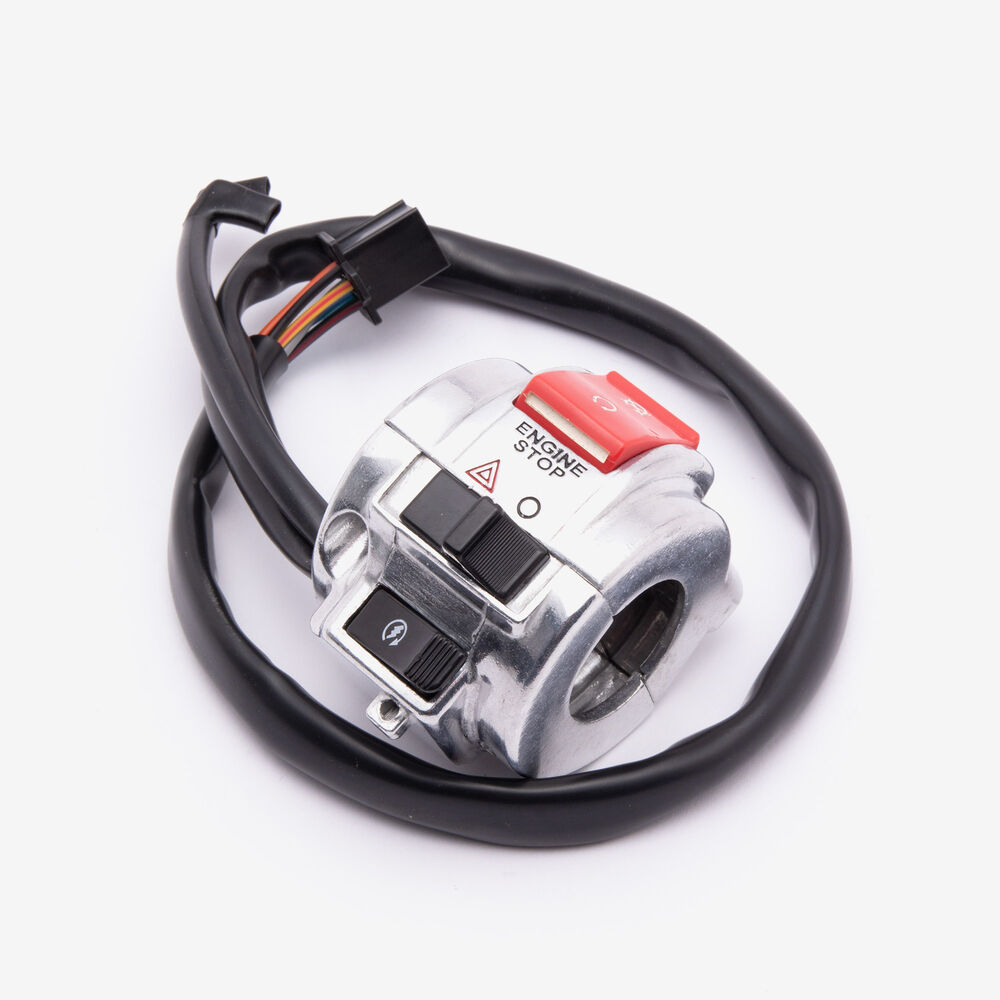 The handlebar switch (right) on a motorcycle is a control unit located on the right side of the handlebars. It typically includes switches for operating the throttle, and sometimes the starter button or other functions. Designed for easy access and ergonomic operation, it allows the rider to control essential functions while maintaining grip and control of the bike.