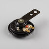 The horn on a motorcycle is an alert device used to produce a loud sound to warn or signal other road users. It is typically mounted on the front of the bike and activated by pressing a button or switch. The horn enhances safety by making the motorcycle more visible and audible in traffic.