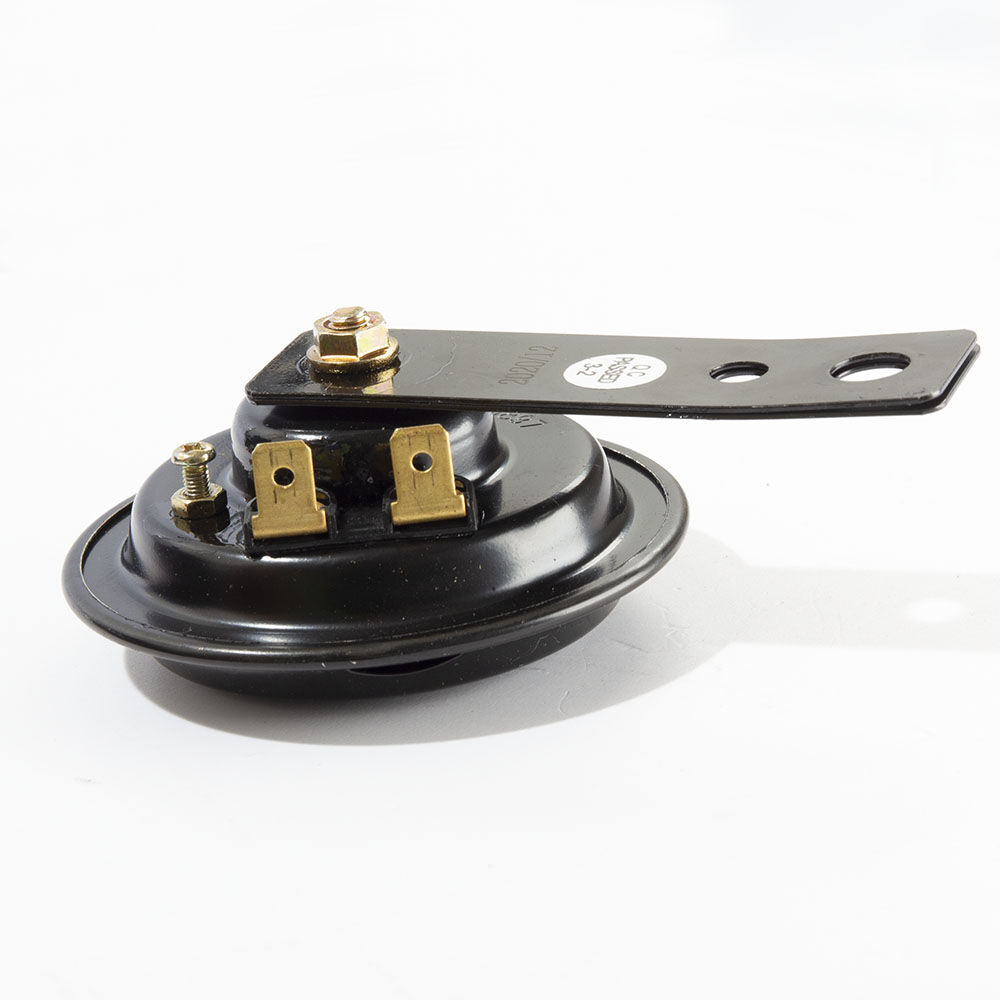 The horn on a motorcycle is an alert device used to produce a loud sound to warn or signal other road users. It is typically mounted on the front of the bike and activated by pressing a button or switch. The horn enhances safety by making the motorcycle more visible and audible in traffic.
