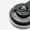 The horn on a motorcycle is an alert device used to produce a loud sound to warn or signal other road users. It is typically mounted on the front of the bike and activated by pressing a button or switch. The horn enhances safety by making the motorcycle more visible and audible in traffic.