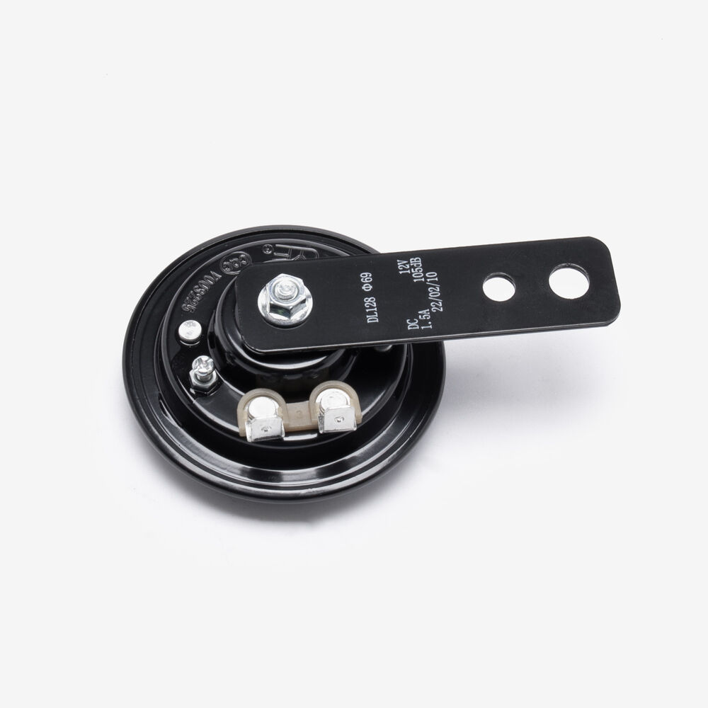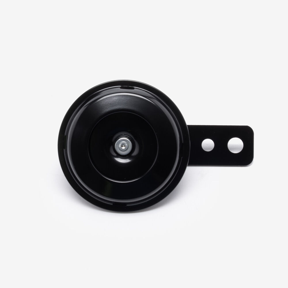 The horn on a motorcycle is an alert device used to produce a loud sound to warn or signal other road users. It is typically mounted on the front of the bike and activated by pressing a button or switch. The horn enhances safety by making the motorcycle more visible and audible in traffic.