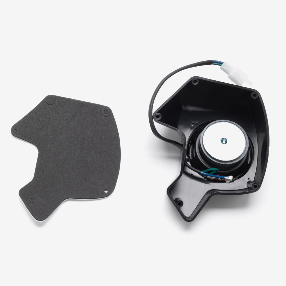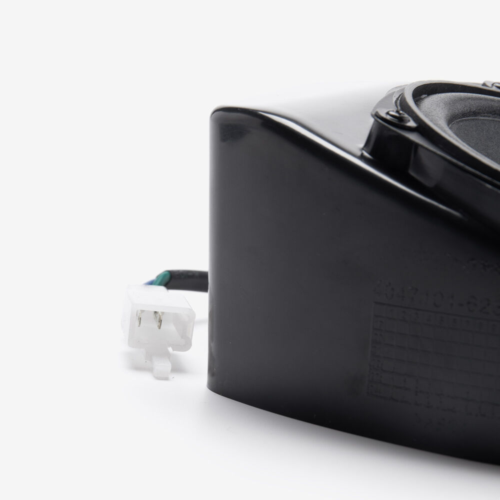 The horn on a motorcycle is an alert device used to produce a loud sound to warn or signal other road users. It is typically mounted on the front of the bike and activated by pressing a button or switch. The horn enhances safety by making the motorcycle more visible and audible in traffic.