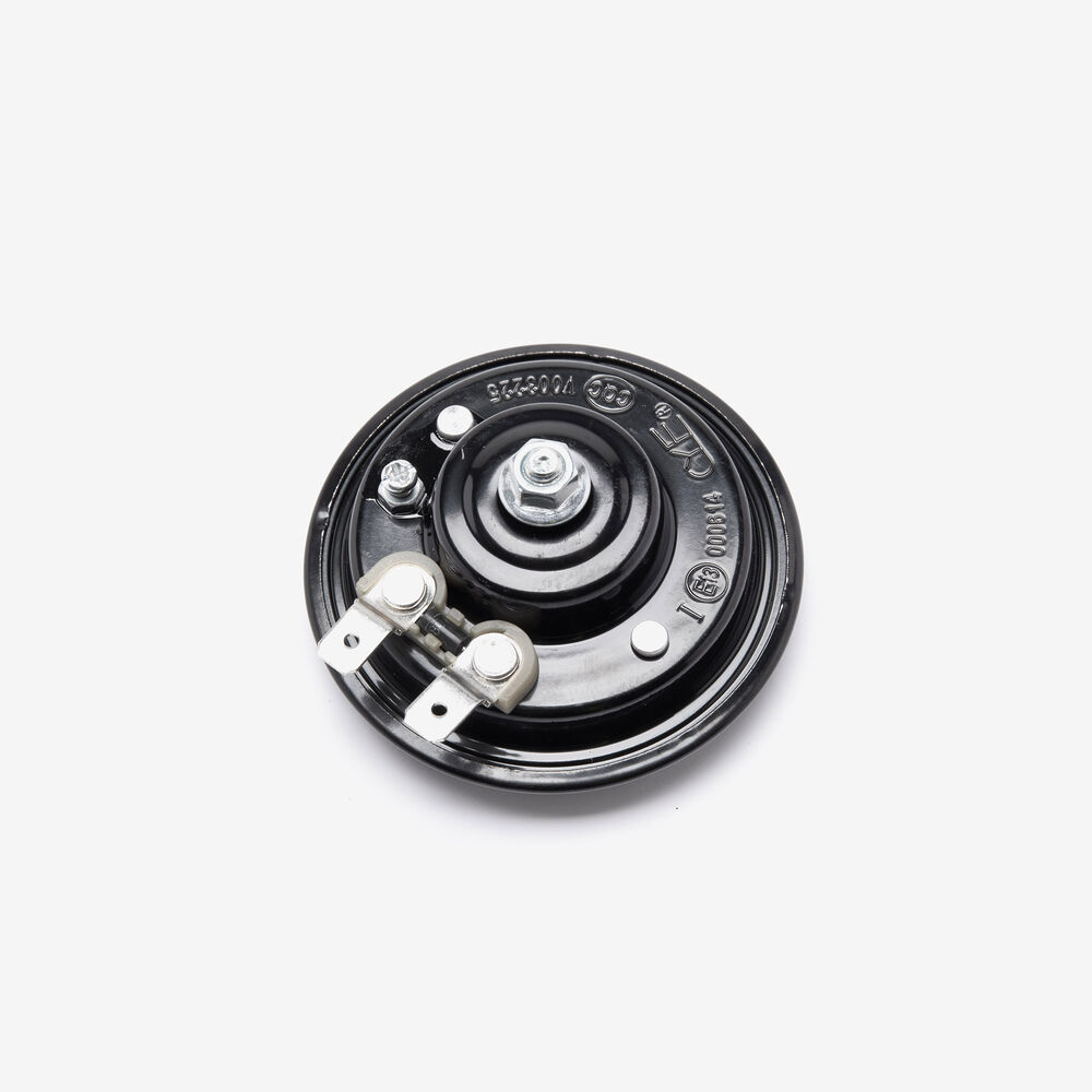 The horn on a motorcycle is an alert device used to produce a loud sound to warn or signal other road users. It is typically mounted on the front of the bike and activated by pressing a button or switch. The horn enhances safety by making the motorcycle more visible and audible in traffic.