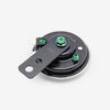 The horn on a motorcycle is an alert device used to produce a loud sound to warn or signal other road users. It is typically mounted on the front of the bike and activated by pressing a button or switch. The horn enhances safety by making the motorcycle more visible and audible in traffic.