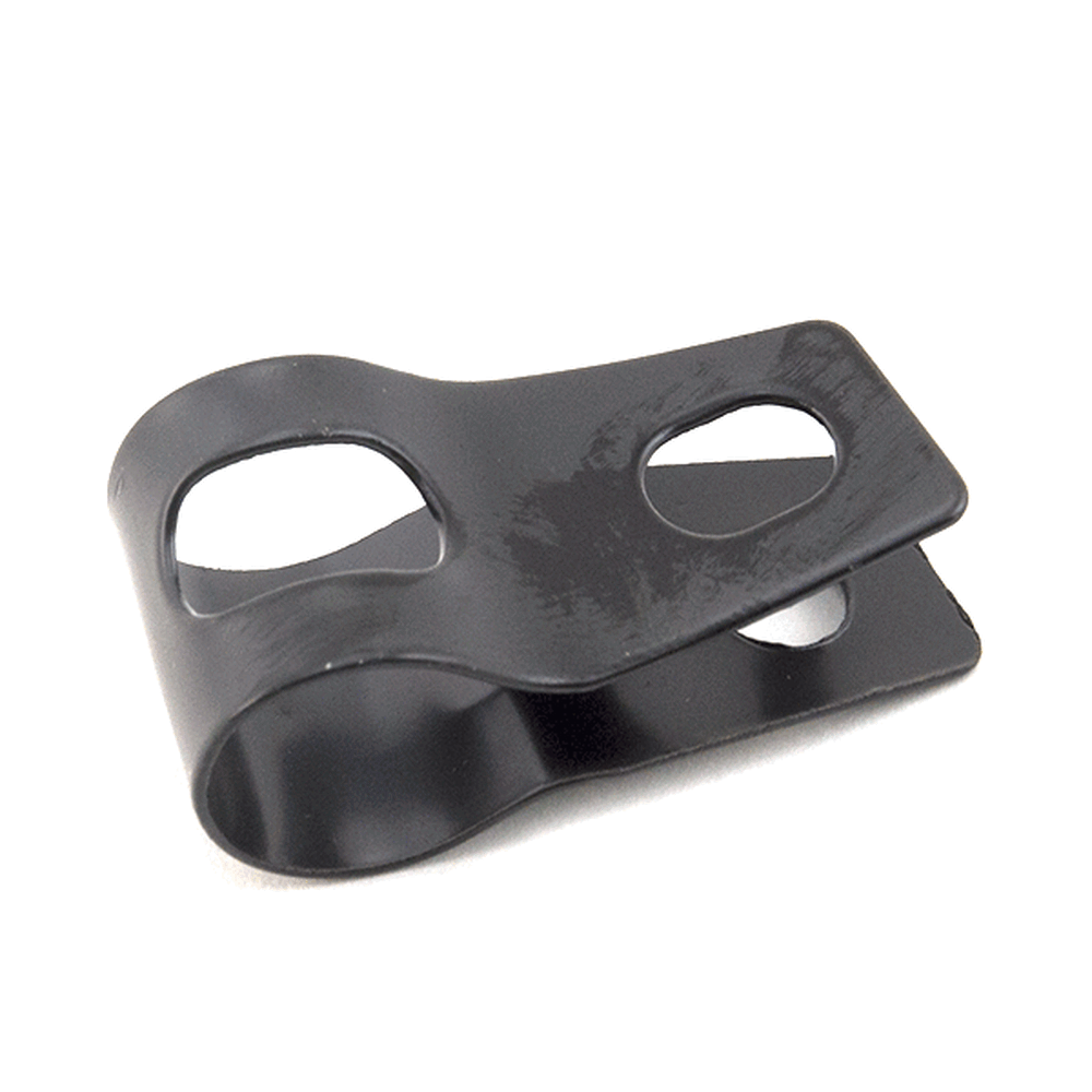 A hose clip on a motorcycle is a fastening device used to secure hoses to fittings or connectors. It ensures that the hose remains tightly sealed and prevents leaks by applying consistent pressure around the hose.
