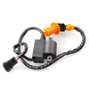 The ignition coil on a motorcycle is an electrical component that converts low voltage from the battery into a high voltage necessary to ignite the fuel-air mixture in the engine's combustion chamber. It is crucial for the engine’s starting and overall performance, ensuring efficient combustion and smooth operation.