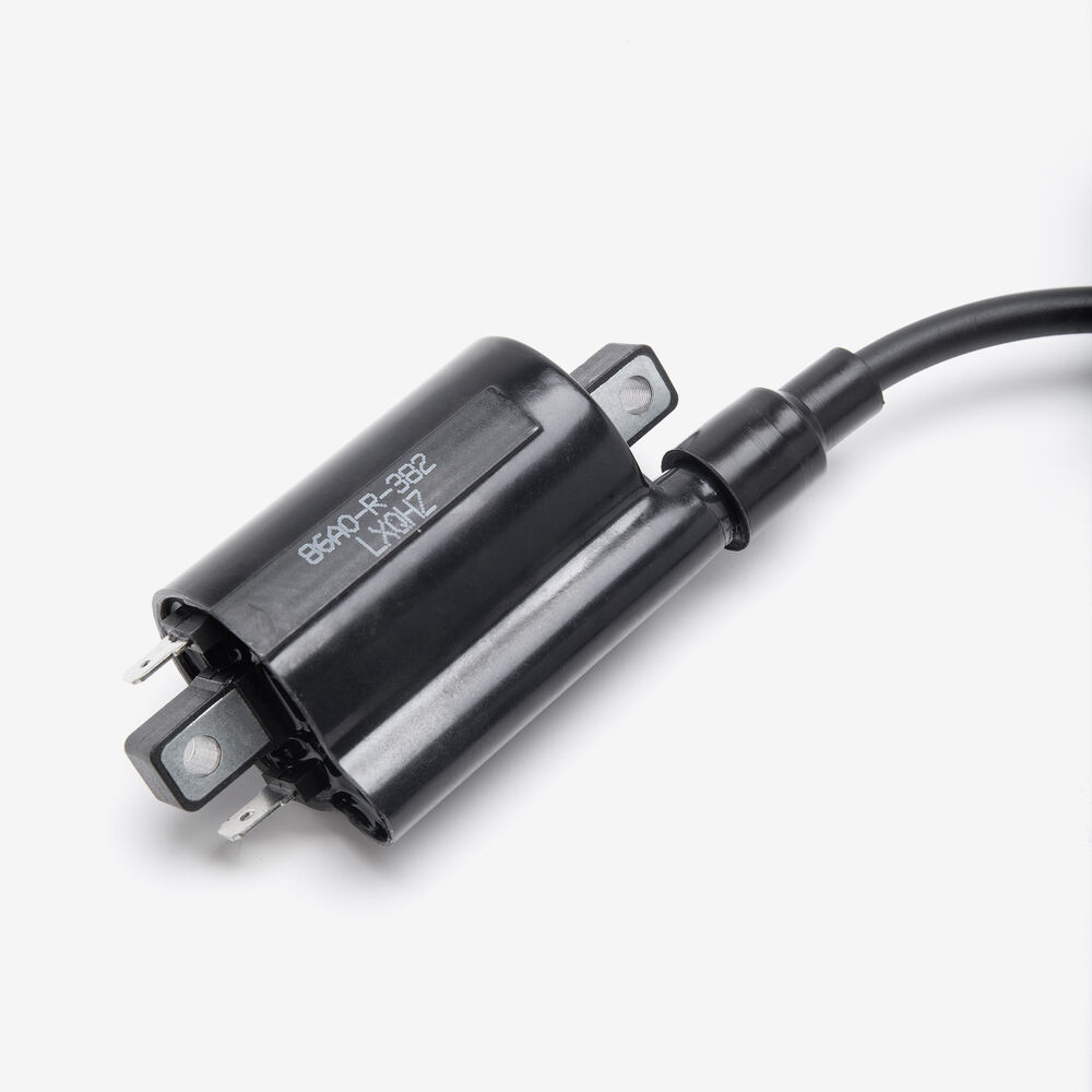 The ignition coil on a motorcycle is an electrical component that converts low voltage from the battery into a high voltage necessary to ignite the fuel-air mixture in the engine's combustion chamber. It is crucial for the engine’s starting and overall performance, ensuring efficient combustion and smooth operation.