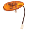 The indicator on a motorcycle is a signaling device used to communicate the rider's intent to turn or change lanes. It typically consists of a light that flashes to alert other road users. Mounted on the front and rear of the bike, indicators are essential for safety, helping to ensure that the rider's movements are clearly visible to others.