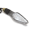 The indicator on a motorcycle is a signaling device used to communicate the rider's intent to turn or change lanes. It typically consists of a light that flashes to alert other road users. Mounted on the front and rear of the bike, indicators are essential for safety, helping to ensure that the rider's movements are clearly visible to others.