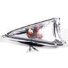 The indicator on a motorcycle is a signaling device used to communicate the rider's intent to turn or change lanes. It typically consists of a light that flashes to alert other road users. Mounted on the front and rear of the bike, indicators are essential for safety, helping to ensure that the rider's movements are clearly visible to others.