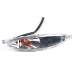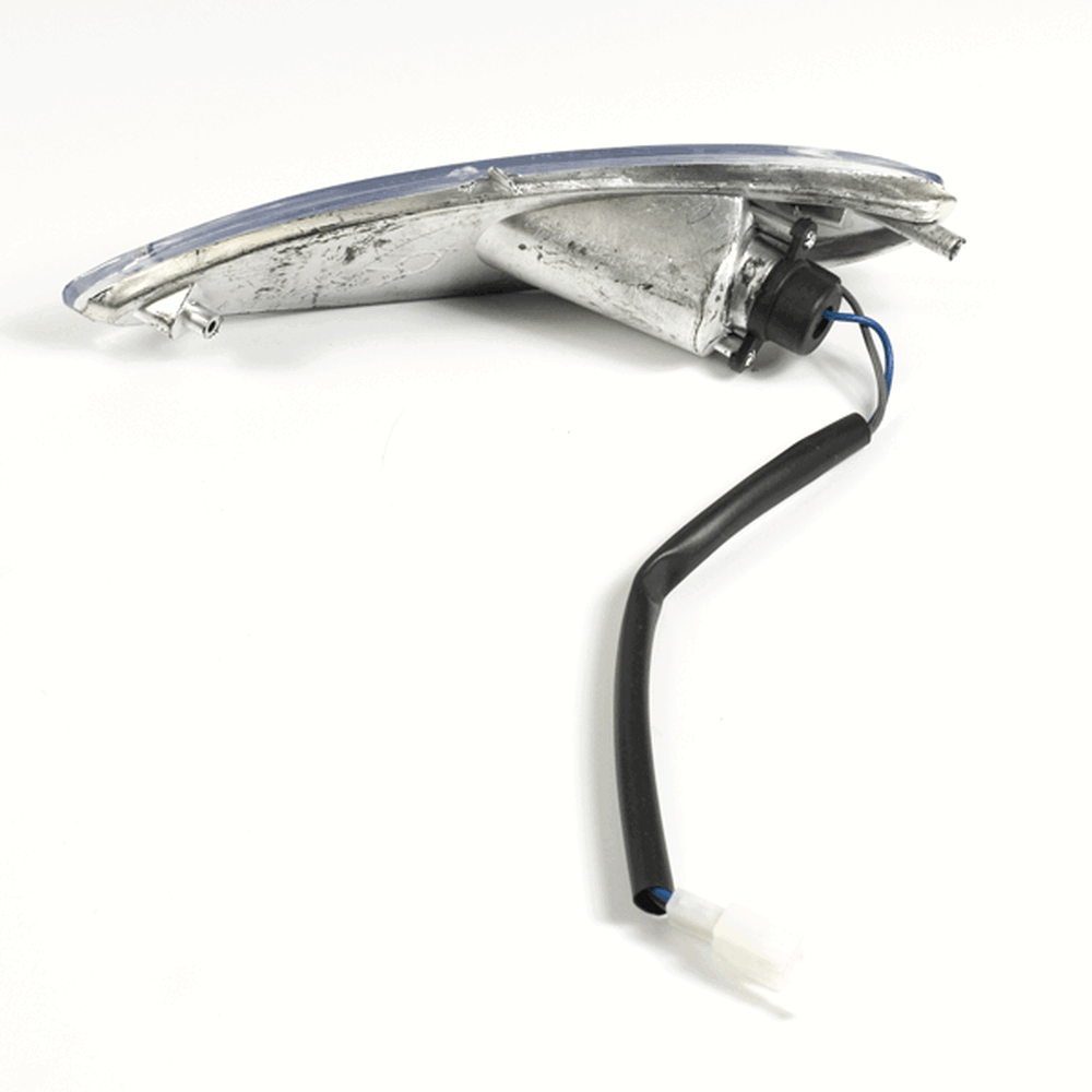 The indicator on a motorcycle is a signaling device used to communicate the rider's intent to turn or change lanes. It typically consists of a light that flashes to alert other road users. Mounted on the front and rear of the bike, indicators are essential for safety, helping to ensure that the rider's movements are clearly visible to others.