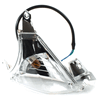 The indicator on a motorcycle is a signaling device used to communicate the rider's intent to turn or change lanes. It typically consists of a light that flashes to alert other road users. Mounted on the front and rear of the bike, indicators are essential for safety, helping to ensure that the rider's movements are clearly visible to others.