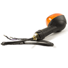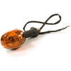 The indicator on a motorcycle is a signaling device used to communicate the rider's intent to turn or change lanes. It typically consists of a light that flashes to alert other road users. Mounted on the front and rear of the bike, indicators are essential for safety, helping to ensure that the rider's movements are clearly visible to others.