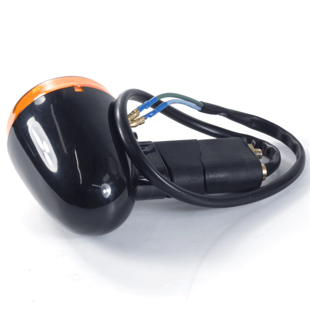 The indicator on a motorcycle is a signaling device used to communicate the rider's intent to turn or change lanes. It typically consists of a light that flashes to alert other road users. Mounted on the front and rear of the bike, indicators are essential for safety, helping to ensure that the rider's movements are clearly visible to others.