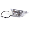 The indicator on a motorcycle is a signaling device used to communicate the rider's intent to turn or change lanes. It typically consists of a light that flashes to alert other road users. Mounted on the front and rear of the bike, indicators are essential for safety, helping to ensure that the rider's movements are clearly visible to others.
