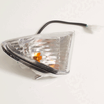 The indicator on a motorcycle is a signaling device used to communicate the rider's intent to turn or change lanes. It typically consists of a light that flashes to alert other road users. Mounted on the front and rear of the bike, indicators are essential for safety, helping to ensure that the rider's movements are clearly visible to others.