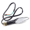 The indicator on a motorcycle is a signaling device used to communicate the rider's intent to turn or change lanes. It typically consists of a light that flashes to alert other road users. Mounted on the front and rear of the bike, indicators are essential for safety, helping to ensure that the rider's movements are clearly visible to others.