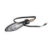 The indicator on a motorcycle is a signaling device used to communicate the rider's intent to turn or change lanes. It typically consists of a light that flashes to alert other road users. Mounted on the front and rear of the bike, indicators are essential for safety, helping to ensure that the rider's movements are clearly visible to others.
