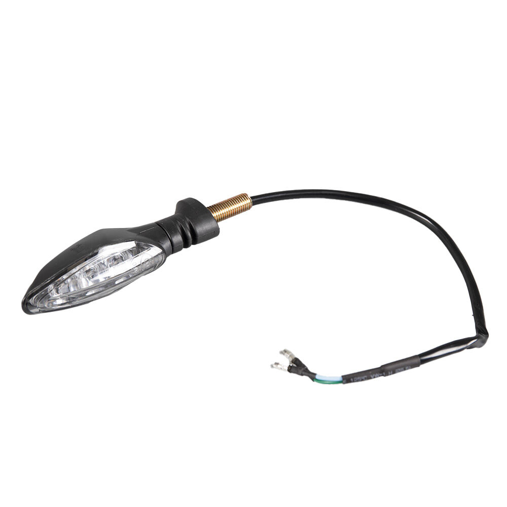 The indicator on a motorcycle is a signaling device used to communicate the rider's intent to turn or change lanes. It typically consists of a light that flashes to alert other road users. Mounted on the front and rear of the bike, indicators are essential for safety, helping to ensure that the rider's movements are clearly visible to others.
