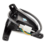 The indicator on a motorcycle is a signaling device used to communicate the rider's intent to turn or change lanes. It typically consists of a light that flashes to alert other road users. Mounted on the front and rear of the bike, indicators are essential for safety, helping to ensure that the rider's movements are clearly visible to others.