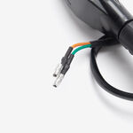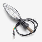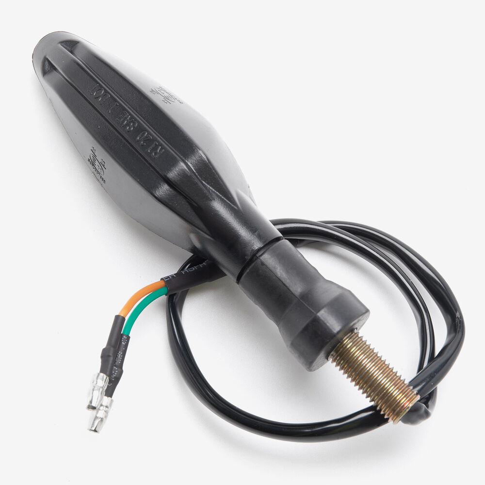 The indicator on a motorcycle is a signaling device used to communicate the rider's intent to turn or change lanes. It typically consists of a light that flashes to alert other road users. Mounted on the front and rear of the bike, indicators are essential for safety, helping to ensure that the rider's movements are clearly visible to others.
