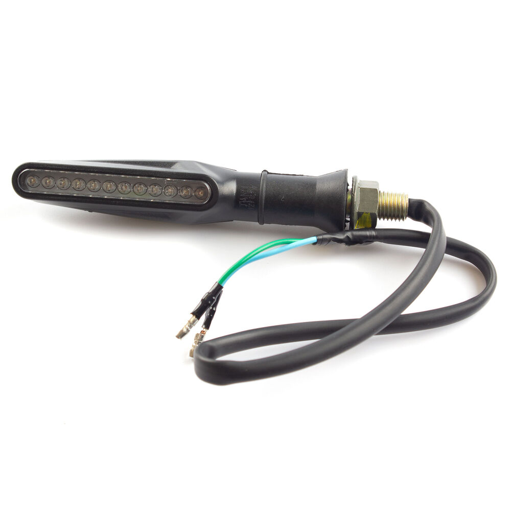 The indicator on a motorcycle is a signaling device used to communicate the rider's intent to turn or change lanes. It typically consists of a light that flashes to alert other road users. Mounted on the front and rear of the bike, indicators are essential for safety, helping to ensure that the rider's movements are clearly visible to others.