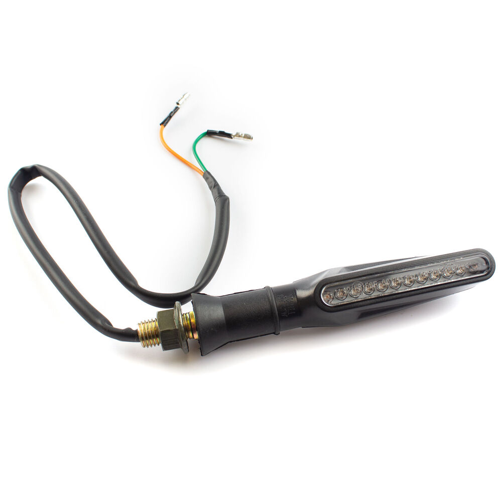 The indicator on a motorcycle is a signaling device used to communicate the rider's intent to turn or change lanes. It typically consists of a light that flashes to alert other road users. Mounted on the front and rear of the bike, indicators are essential for safety, helping to ensure that the rider's movements are clearly visible to others.