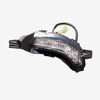 The indicator on a motorcycle is a signaling device used to communicate the rider's intent to turn or change lanes. It typically consists of a light that flashes to alert other road users. Mounted on the front and rear of the bike, indicators are essential for safety, helping to ensure that the rider's movements are clearly visible to others.