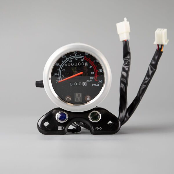 The indicator on a motorcycle is a signaling device used to communicate the rider's intent to turn or change lanes. It typically consists of a light that flashes to alert other road users. Mounted on the front and rear of the bike, indicators are essential for safety, helping to ensure that the rider's movements are clearly visible to others.