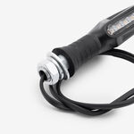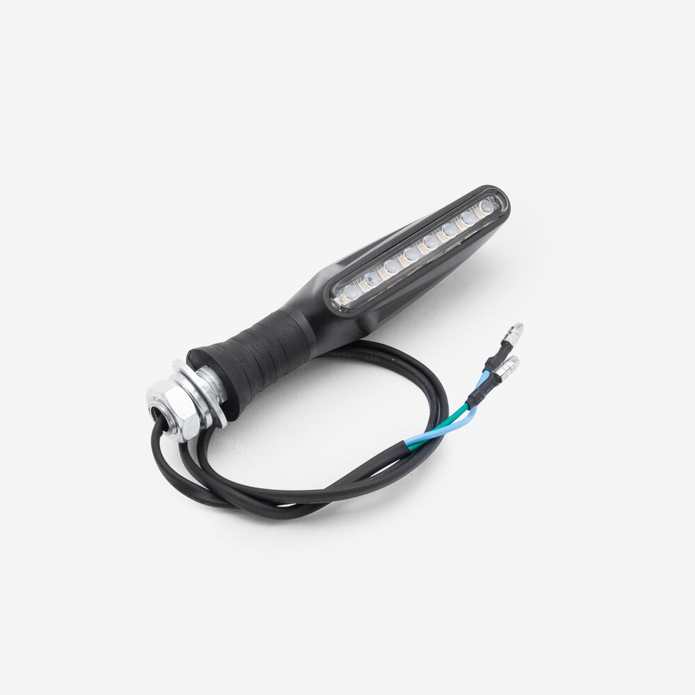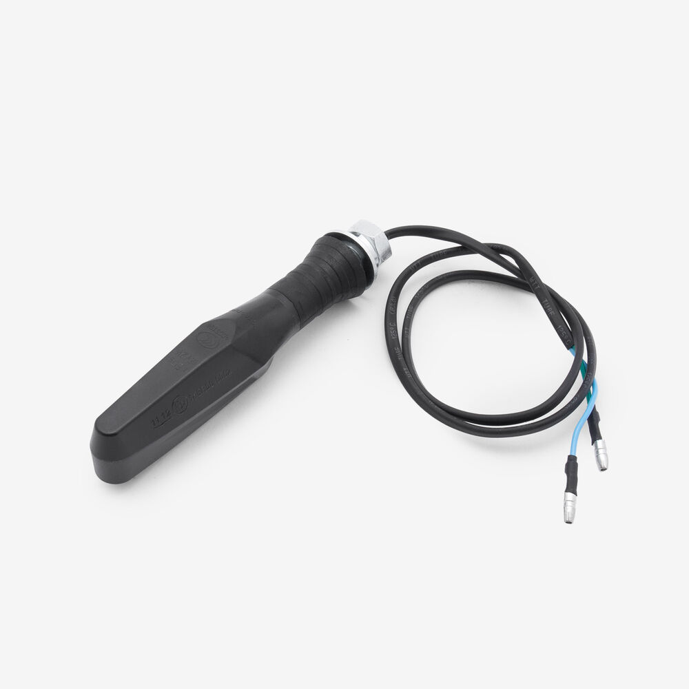 The indicator on a motorcycle is a signaling device used to communicate the rider's intent to turn or change lanes. It typically consists of a light that flashes to alert other road users. Mounted on the front and rear of the bike, indicators are essential for safety, helping to ensure that the rider's movements are clearly visible to others.