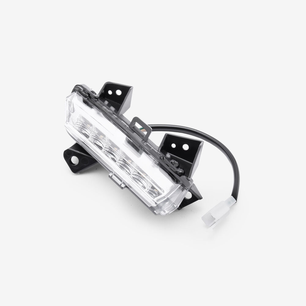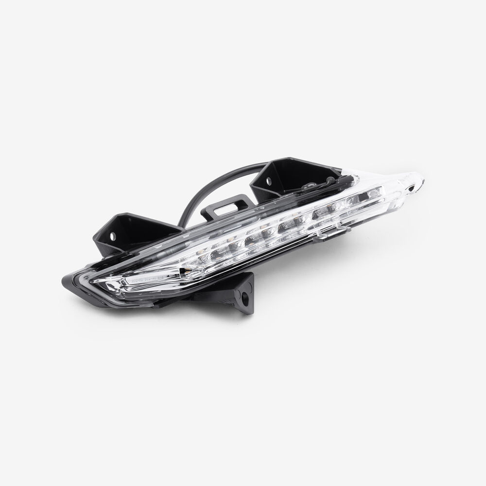 The indicator on a motorcycle is a signaling device used to communicate the rider's intent to turn or change lanes. It typically consists of a light that flashes to alert other road users. Mounted on the front and rear of the bike, indicators are essential for safety, helping to ensure that the rider's movements are clearly visible to others.