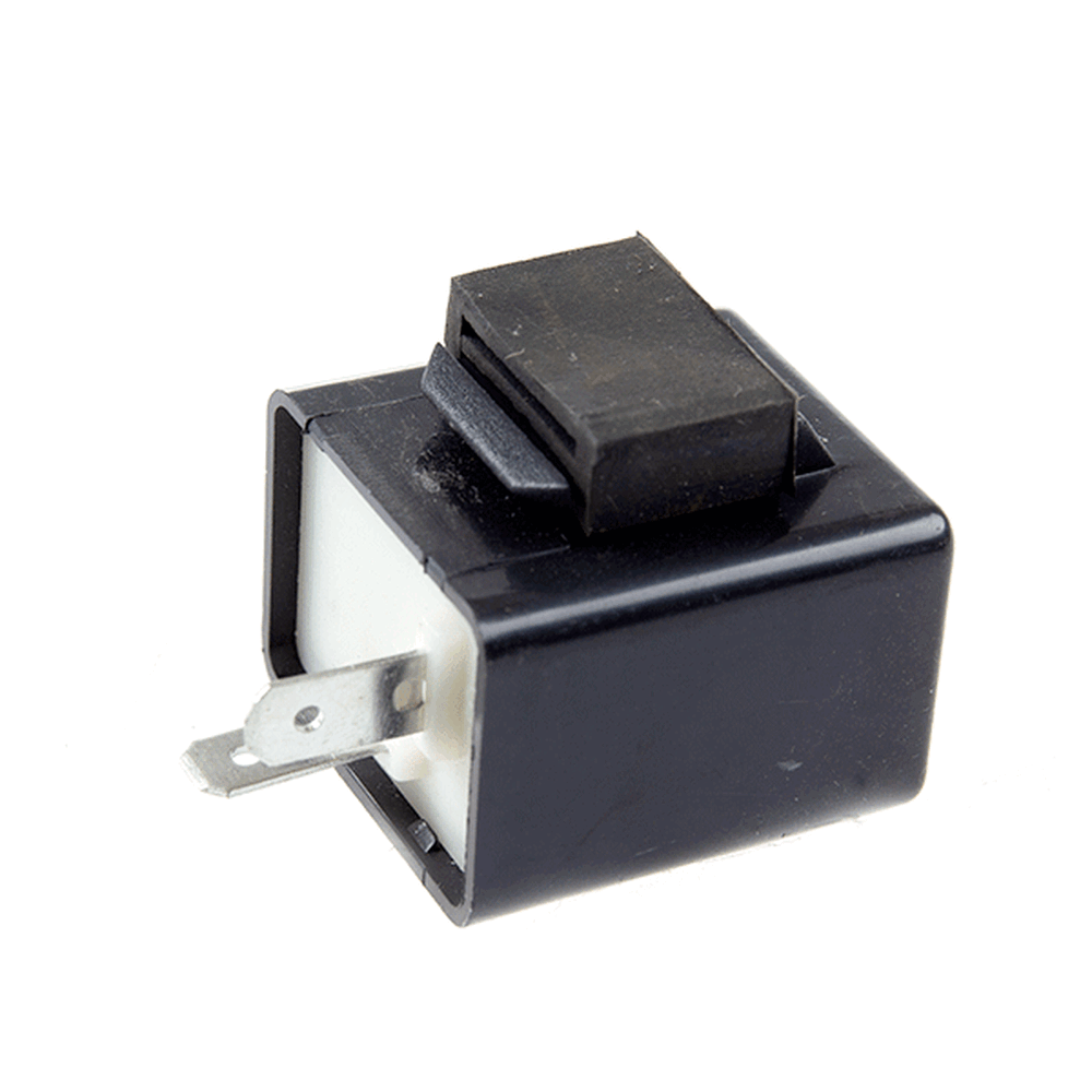 The indicator relay on a motorcycle is an electrical component that controls the flashing rate of the turn signal lights. It regulates the timing between blinks to ensure the indicators flash at the correct speed. Designed for reliability and precision, the indicator relay helps maintain proper signaling and enhances safety.