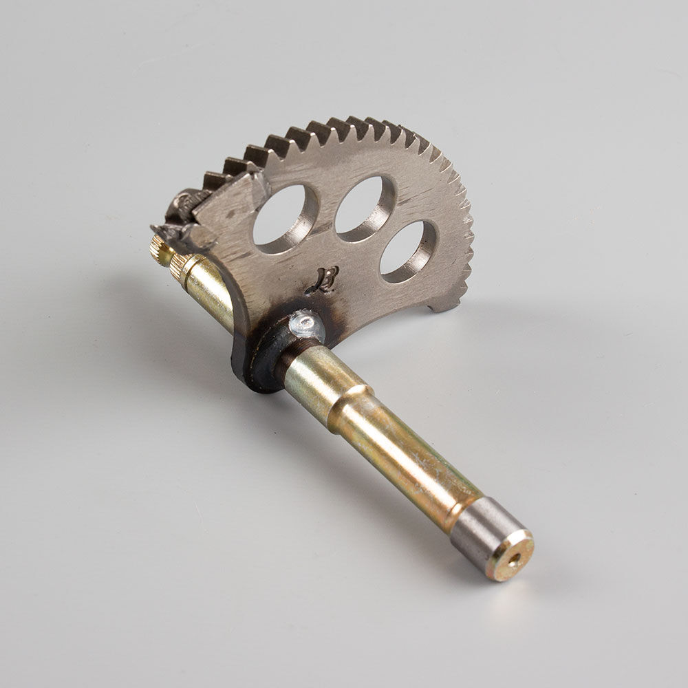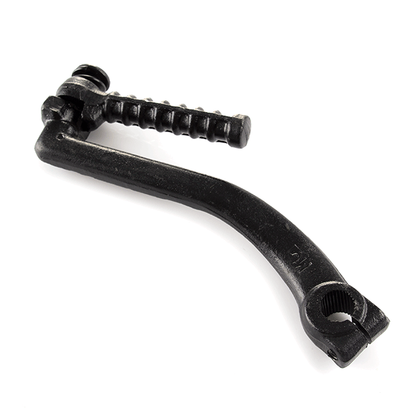 The kick start shaft on a motorcycle is a component that transfers the force from the kick starter lever to the engine’s starting mechanism. It facilitates the manual starting of the engine by converting the rider's kick into rotational motion.