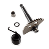 The kick start shaft on a motorcycle is a component that transfers the force from the kick starter lever to the engine’s starting mechanism. It facilitates the manual starting of the engine by converting the rider's kick into rotational motion.